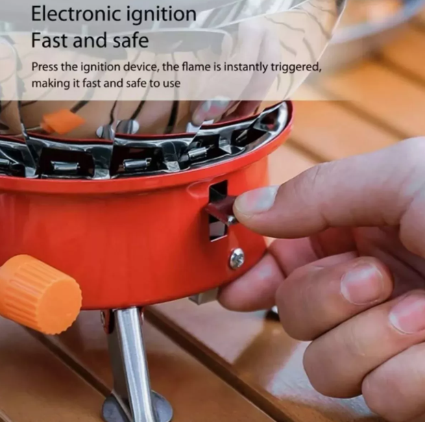 * Dispositivo de Encendido Electrónico Incorporado: simplemente presione el dispositivo de encendido de la estufa de camping y la llama se encenderá con solo tocar un botón.