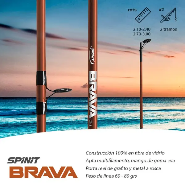Caña Spinit Brava 2.10 mts 2 tramos