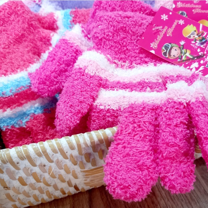 Guantes de lana termico ,peluche , abrigado.De colores infantiles.Diseño a rayas. Guantes plush.Ideal para niños y niñas invierno.