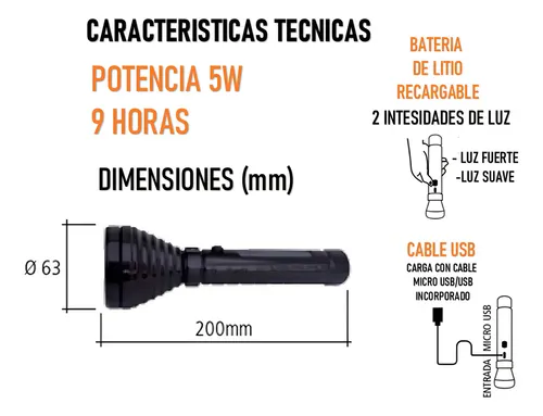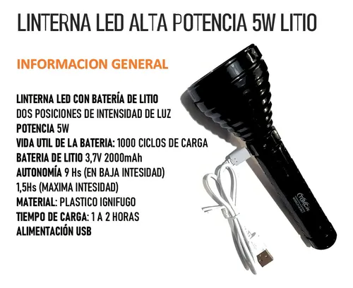 Linterna Led Recargable 5w Tbcin LE05LT Batería de Litio