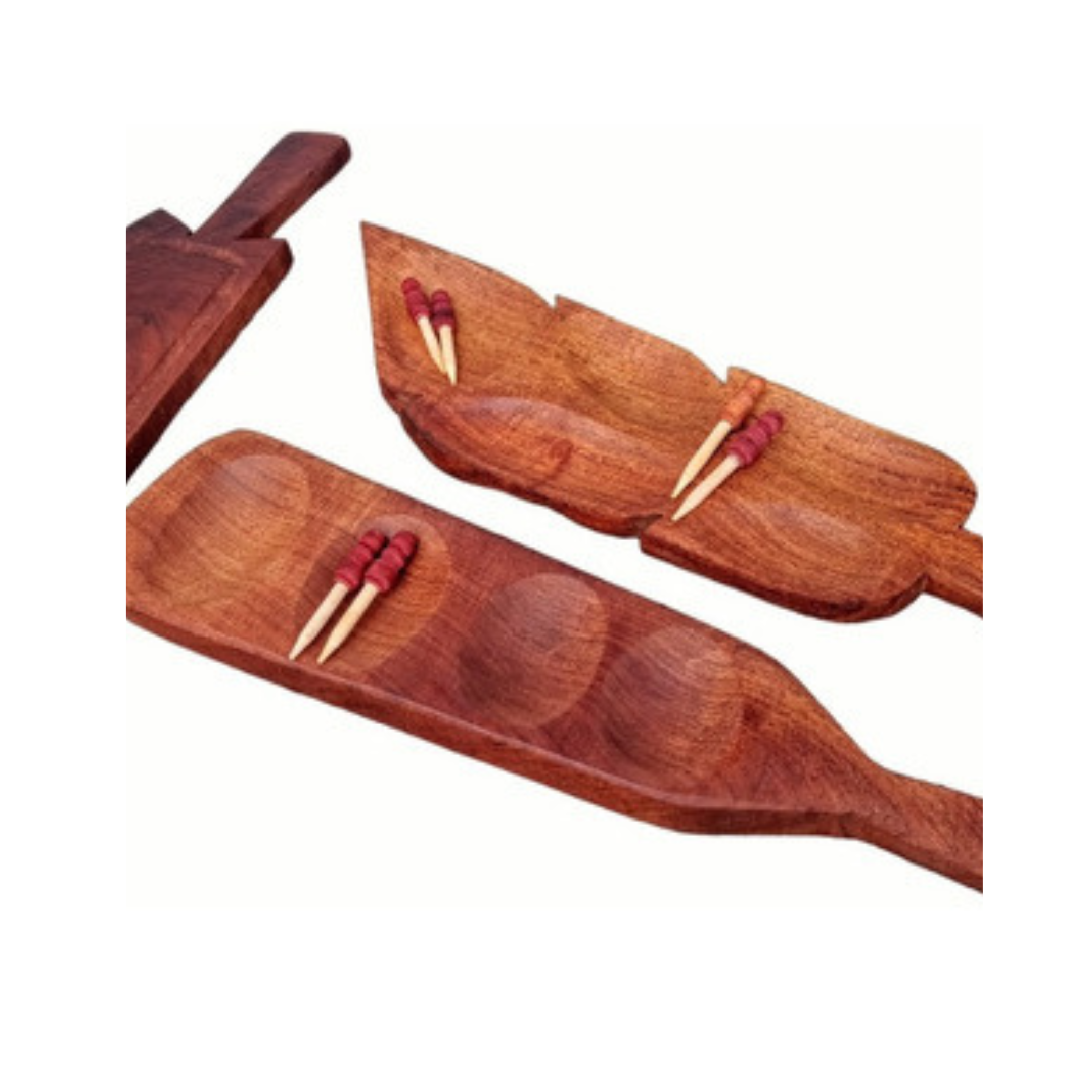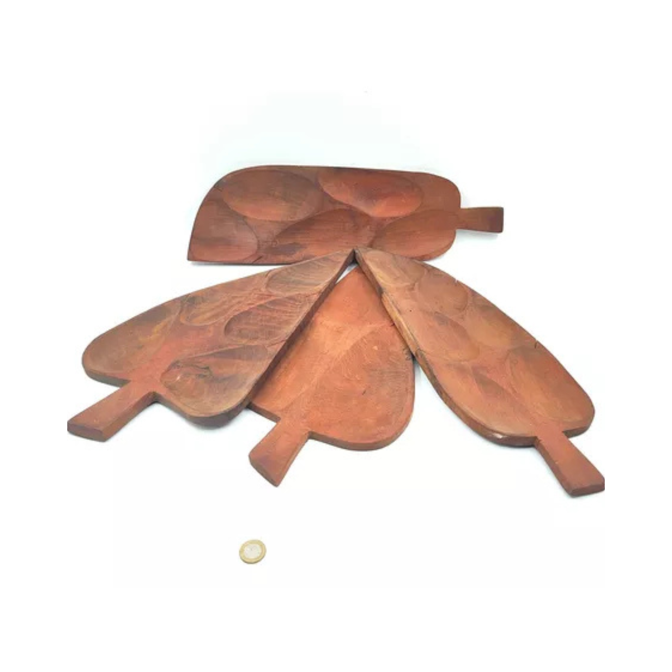 Tabla de algarrobo artesanal con forma de hoja, ideal picada. Rústica. Con 5,6,7 divisiones. Medidas aprox: 45/55 cm de largo (dependiendo del modelo).