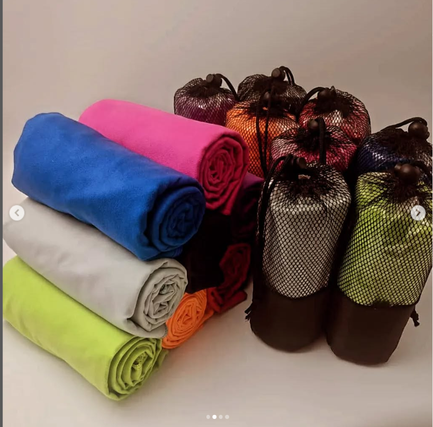 Toallón de secado rápido, ideal para deportes, pileta, playa, jardín y más usos. Hecho en microfibra con costura al tono, viene en una bolsa para transportar. Ocupa muy poco espacio, por lo que se puede llevar a todos lados sin problemas. Cuenta con un elástico para sujetarlo antes de guardar en la bolsa.