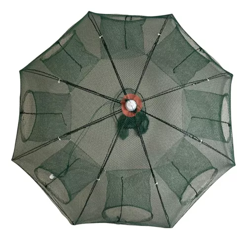 Trampa para mojarras con 8 bocas.Atrapa mojarras,cangrejos,cornalitos,camarones..etc..etc.Plegable,forma de paraguas,resistente a la corrosión